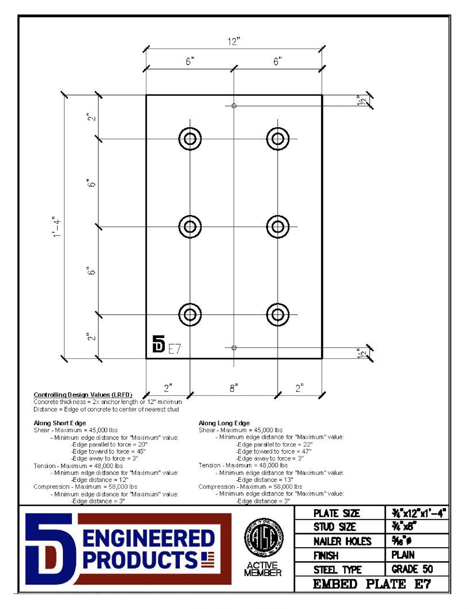 E7 – PL 3/4X12X1′-4 Steel Embed