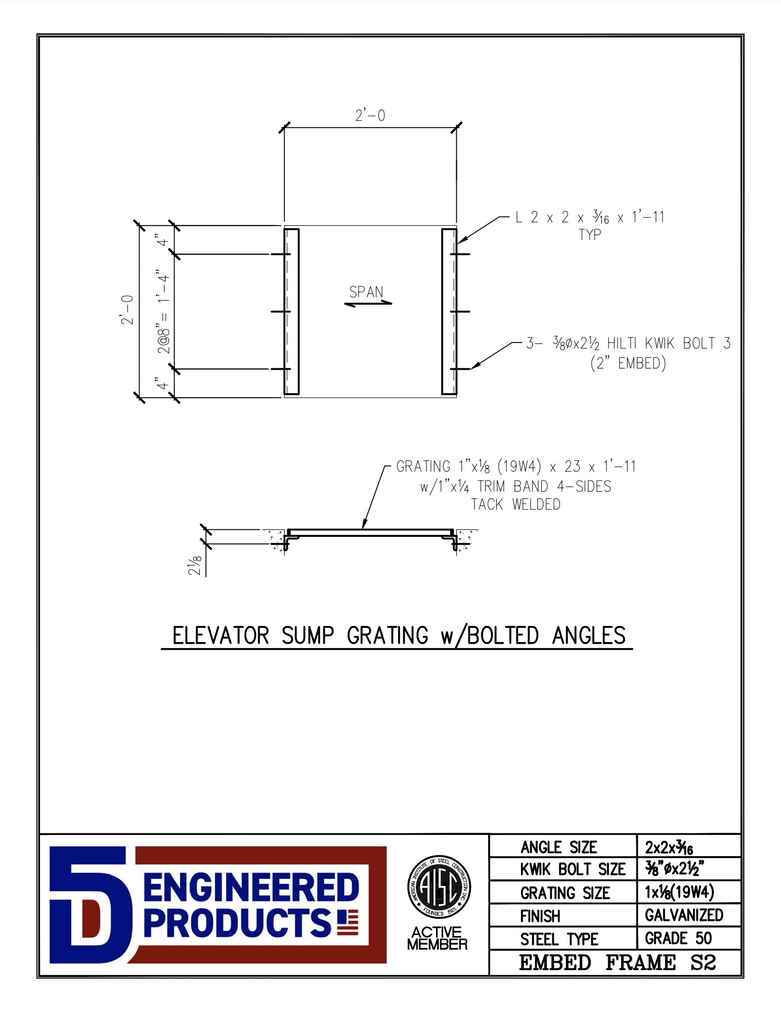 S2-AFTER SET SUPPORTS Elevator Sump Pit Cover